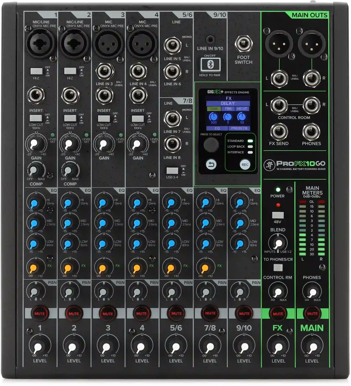 Mackie ProFX10 GO là một công cụ lý tưởng cho các nhạc sĩ và nhà sản xuất âm nhạc chuyên nghiệp. Với 10 kênh đầu vào, ProFX10 GO cho phép kết nối nhiều nguồn âm thanh khác nhau, từ micro, nhạc cụ đến các thiết bị phát lại. Các preamp Vita™ đảm bảo chất lượng âm thanh rõ ràng và chi tiết, giúp người dùng thu âm giọng hát và nhạc cụ một cách trung thực nhất. Bộ xử lý hiệu ứng GigFX™ cung cấp 24 hiệu ứng khác nhau, cho phép người dùng tạo ra những âm thanh độc đáo và phù hợp với phong cách âm nhạc của mình.